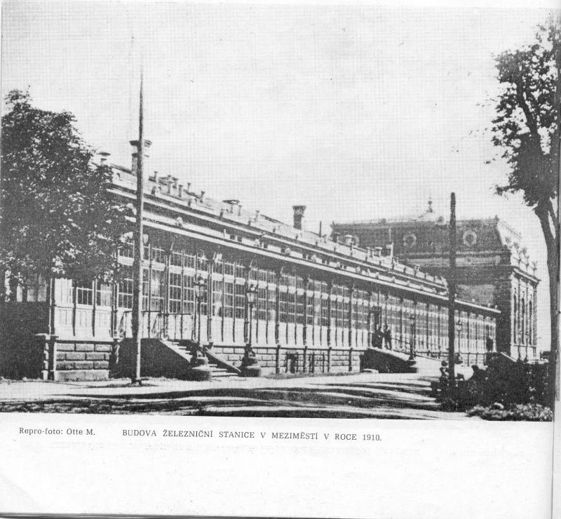 V roce 1879 byla dokončena velkolepá nádražní budova v Meziměstí. V roce 1947 byly s významnou pomocí dokončeny nákladné úpravy divadla a tělocvičny na nádraží. Dále byla provedena rekonstrukce staniční haly, sociálního zařízení. Byla plánovaná i výstavba lávky pro pěší přeš kolejiště do Školní ulice. Tato lávka je nyní velmi využívaná. Autorem repro-fotografie je Otte M.